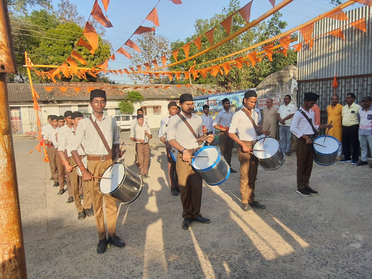 अंबिकापुर//आज राष्ट्रीय स्वयंसेवक संघ अंबिकापुर के घोष दल द्वारा महाशिवरात्रि के पावन अवसर पर विभिन्न रचनाओं व भजनों का वादन गाँधी स्टेडियम के समीप स्थित शिव शक्ति मंदिर में किया गया। इस अवसर पर नगर घोष प्रमुख आशीष कानूनगो, नगर कार्यवाह अनुज दुबे, सह नगर संघ चालक अभय पालोलकर, मनोज प्रजापति, ओमी शर्मा, यशराज सिंह, संतोष चौबे जिला व्यवस्था प्रमुख श्रवन गुप्ता, जिला सेवा प्रमुख,राजेंद्र जायसवाल सह विभाग कार्यवाह अजय मिश्र सहित अन्य स्वयंसेवक उपस्थित रहे।
