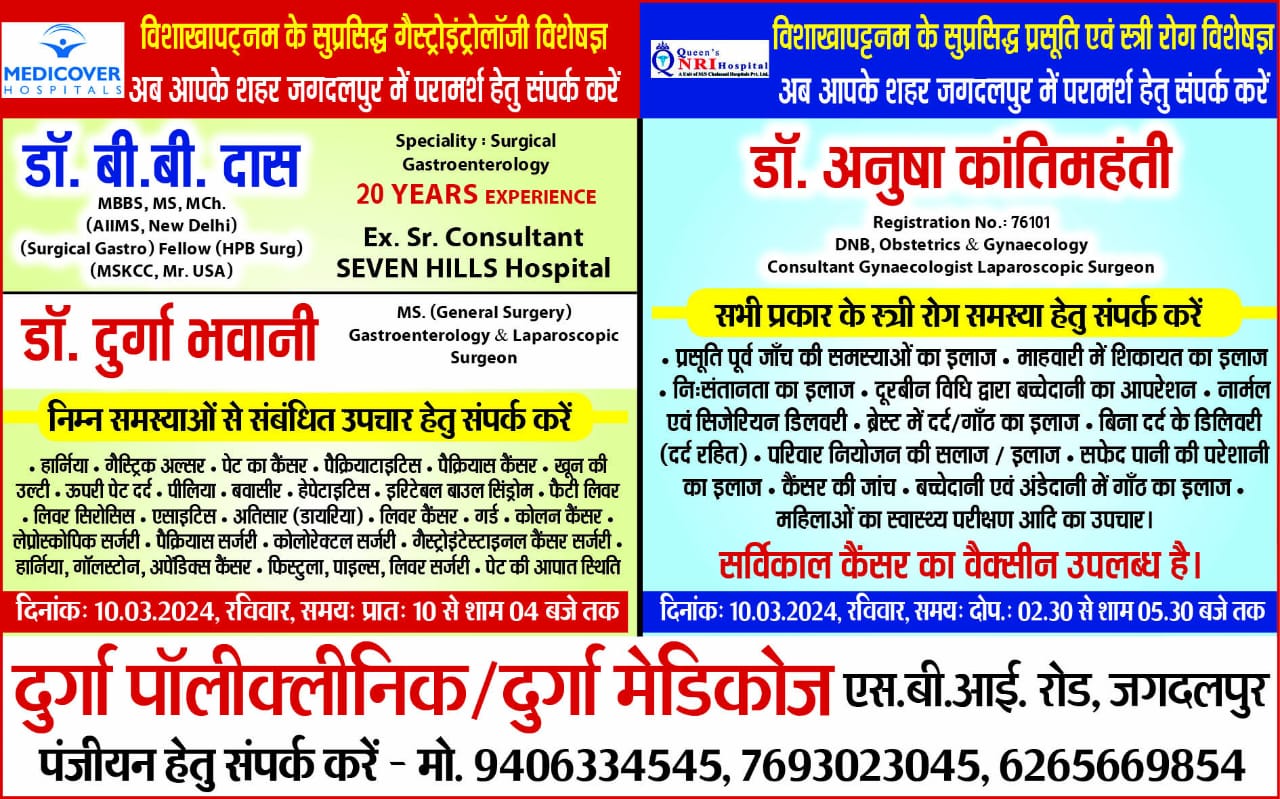 विशाखापट्टनम के सुप्रसिद्ध डॉक्टर (विशेषज्ञ) आज आपके शहर जगदलपुर में