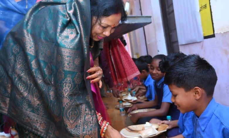 मुख्यमंत्री की धर्मपत्नी ने अपने जन्मदिन पर आयोजित न्योता भोज में अपने हाथों से बनी खीर बच्चों को परोसी