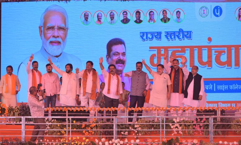 राज्य स्तरीय महापंचायत कार्यक्रम में केंद्रीय राज्यमंत्री पंचायतीराज मंत्रालय कपिल मोरेश्वर पाटिल एवं उप मुख्यमंत्री विजय शर्मा ने किया हितग्राहियों को राशि अंतरण