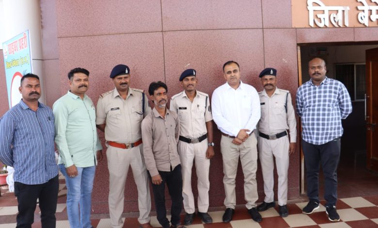 बेमेतरा – पुलिस महानिरीक्षक दुर्ग रेंज रामगोपाल गर्ग के निर्देशन पर पुलिस अधीक्षक बेमेतरा रामकृष्ण साहू एवं अति. पुलिस अधीक्षक ज्योति सिंह, एसडीओपी बेमेतरा मनोज तिर्की के मार्गदर्शन में थाना/ चौकी प्रभारियों के द्वारा अवैध शराब, जुआ, सट्टा, गांजा, नशीली दवा एवं अन्य अवैध कार्यो में लिप्त लोगो के खिलाफ सख्त प्रभावी कार्यवाही के लिए विशेष अभियान चलाया जा रहा है। जिसके तहत 12 मार्च को थाना सिटी कोतवाली बेमेतरा स्टाफ को मुखबीर से सुचना मिला कि ग्राम रांका निवासी संतोष सिंह चौहान पिता स्वं. पंचू चौहान उम्र 43 साल साकिन रांका अपने गाय कोठा में एक प्लास्टिक के बोरी में अवैध रूप से गांजा जैसा मादक पदार्थ बिक्री करने हेतु रखा हैैं की सूचना पर सायबर सेल टीम एवं थाना सिटी कोतवाली बेमेतरा स्टाफ व गवाहो के साथ घटना स्थल पहुचकर घेराबंदी कर मौके पर रेड कार्यवाही किया गया। जहां आरोपी के कब्जे से मादक पदार्थ गांजा जुमला वजनी 14 किलो कीमती करीबन 1.40 लाख रूपये को जप्त किया गया हैं। जिसमें अवैध मादक पदार्थ गांजा का 1 प्रकरण दर्ज कर 1 आरोपी के विरूद्ध 20 (ख) नारकोटिक एक्ट के तहत विधिवत अग्रिम कार्यावाही की जा रही हैं। उक्त आरोपी के विरूद्ध पूर्व में अवैध गांजा मामले में कार्यवाही की जा चुकि है। बेमेतरा पुलिस द्वारा अवैध शराब, जुआ, सट्टा, गांजा, नशीली दवा एवं अन्य अवैध कार्यो में लिप्त लोगो के खिलाफ सख्त प्रभावी कार्यवाही लगातार जारी रहेगा। उक्त कार्यवाही वरिष्ठ अधिकारियों के निर्देशन एवं मार्गदर्शन में थाना सिटी कोतवाली बेमेतरा प्रभारी चंद्रदेव वर्मा एवं सायबर सेल प्रभारी उप निरीक्षक मयंक मिश्रा, सउनि संतोष ध्रुर्वे, प्रधान आरक्षक रविन्द्र तिवारी, विनोद पात्रे, मोहित चेलक, लोकेश सिंह, आरक्षक राजेश ध्रुव, मोती जयसवाल, संजय पाटिल, सौरभ सिंह, इंद्रजीत पांडेय, नुरेश वर्मा, शिव सेन एवं अन्य थाना स्टाफ का सराहनीय भुमिका रही।