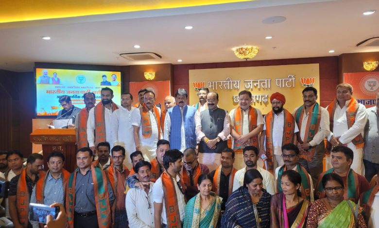 रायपुर। भारतीय जनता पार्टी प्रदेश कार्यालय कुशाभाऊ ठाकरे परिसर में आज भाजपा प्रदेश सह प्रभारी एवं बिहार सरकार के मंत्री नितिन नबीन, उपमुख्यमंत्री अरुण साव, सांसद सुनील सोनी, प्रदेश महामंत्री संजय श्रीवास्तव, रामू रोहरा, भरत लाल वर्मा , भाजपा प्रदेश मीडिया प्रभारी अमित चिमनानी, प्रितेश गांधी के उपस्थिति में धमतरी के पूर्व विधायक के सुपुत्र सहित सैंकड़ों की संख्या में कांग्रेस कार्यकर्ता एवं अन्य लोग भाजपा में शामिल हुए। भाजपा प्रदेश सह प्रभारी नितिन नबीन एवं उप मुख्यमंत्री अरुण साव ने भाजपा प्रवेशित लोगों को पार्टी का गमछा पहना कर उनका स्वागत किया।