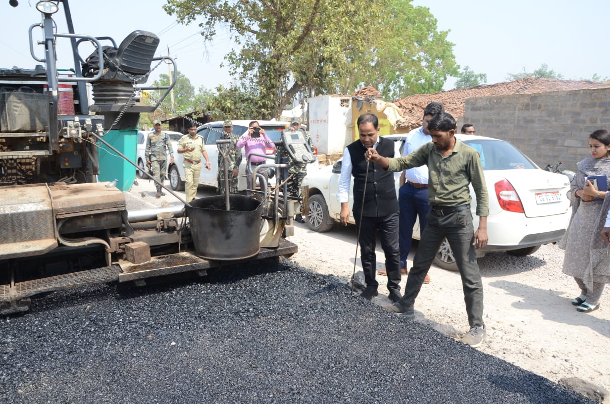 कलेक्टर ने गाड़ी रूकवाई और स्वयं देखी सड़क निर्माण की गुणवत्ता
