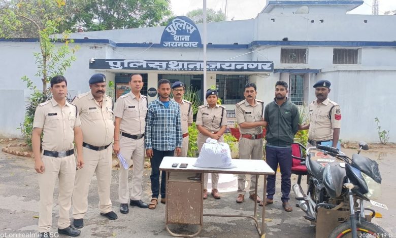 जयनगर पुलिस को सूचना मिली कि बजाज डिस्कवर मो०सा० कमांक सीजी 13 यूबी 5766 कुछ लोग मादक पदार्थ के साथ सिलफिली के तरफ से आ रहे सूचना मिलते ही पुलिस ने देखा कि एक नीले रंग की डिस्कवर मोटरसायकल कमांक सीजी 13 यूबी 5766 में दो व्यक्ति भारी मात्रा में मादक पदार्थ गांजा बिकी करने हेतु ग्राम सिलफिली तरफ आ रहे है आरोपियों को ग्राम सिलफिली राधागोविंद मंदिर