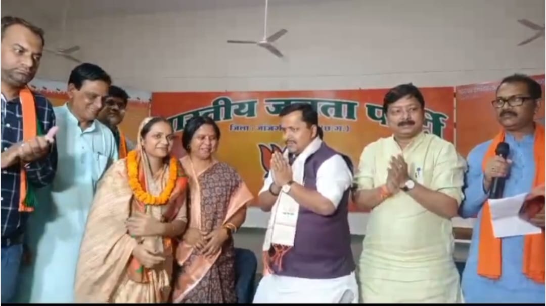 भाजपा प्रदेश प्रभारी नितिन नबीन की माजूदगी में जांजगीर जिला पंचायत अध्यक्ष यनिता चंद्रा भाजपा में शामिल