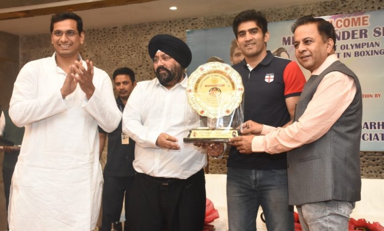 छत्तीसगढ़ ओलंपिक संघ द्वारा ओलंपिक मेडलिस्ट बॉक्सर विजेंदर सिंह का किया गया सम्मान
