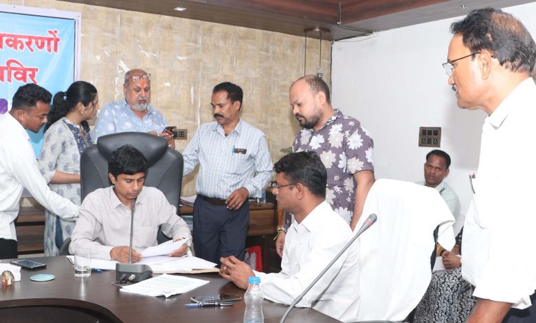उत्तर बस्तर कांकेर// कलेक्टर अभिजीत सिंह के निर्देशानुसार विभिन्न विभागों में रिक्त पदों पर अनुकम्पा नियुक्ति के लंबित प्रकरणों के निराकरण के लिए आज समाधान शिविर का आयोजन किया गया, जिसमें अनुकम्पा नियुक्ति के नए एवं पुराने प्रकरणों का नियमानुसार परीक्षण कर निराकरण के लिए अग्रिम कार्यवाही की गई। जिला कार्यालय के सभाकक्ष में आज सुबह 11 बजे से आयोजित समाधान शिविर में अपर कलेक्टर श्री एस. अहिरवार की उपस्थिति में सभी प्रकरणों की सूक्ष्मता से जांच की गई तथा दस्तावेजों की मूलप्रति से मिलान किया गया।