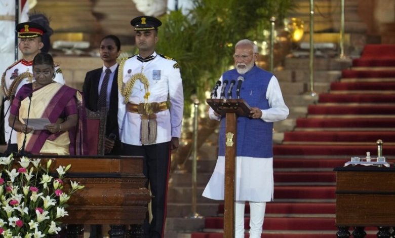 अट्ठारहवीं लोकसभा के चुनाव में राष्ट्रीय जनतांत्रिक गठबंधन (राजग) की जीत के बाद भारतीय जनता पार्टी (भाजपा) के वरिष्ठ नेता नरेन्द्र मोदी ने राष्ट्रपति द्रौपदी मुर्मू ने उन्हें यहां राष्ट्रपति भवन में आयोजित एक समारोह में पद और गोपनीयता की शपथ दिलाई. इसके साथ ही मोदी ने लगातार तीन बार प्रधानमंत्री बनने के देश के पहले प्रधानमंत्री जवाहरलाल नेहरू के रिकॉर्ड की बराबरी कर ली.