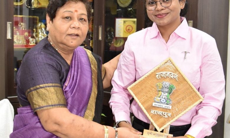 रायपुर : राज्यपाल सुश्री अनुसुईया उइके से पर्वतारोही नैना धाकड़ ने सौजन्य मुलाकात की