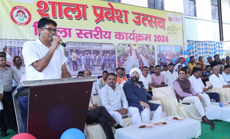 कलेक्टर श्री कार्तिकेया गोयल ने जिला स्तरीय शाला प्रवेश उत्सव को संबोधित करते हुए बच्चों से कहा कि सभी बच्चे अच्छे से पढ़ाई करें। उन्होंने कहा कि हमें एक विद्यार्थी की तरह वित्त मंत्री श्री ओ.पी. चौधरी से प्रेरणा लेनी चाहिए, जो आज हमारे बीच उपस्थित हैं जो कभी शाला प्रवेश उत्सव में रहे होंगे। उन्होंने कड़ी मेहनत और लगन से एक रास्ता चुना और उस मुकाम पर पहुंचे। यह हमारे लिए प्रेरणा स्रोत है। विद्यार्थियों के लिए टीचर एक मार्गदर्शक की भूमिका में होता है। बच्चे उनसे जुड़े रहें, उनकी बातों का अनुसरण करें। उन्होंने सभी को मन लगाकर पढऩे और प्रदेश देश के साथ विदेश में नाम रोशन करने के लिए अपनी शुभकामनाएं दी।