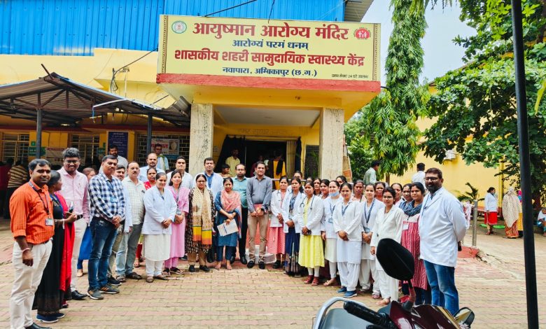 स्वास्थ्य सेवाओं का जायजा लेने राष्ट्रीय टीम एबीडी, राज्य एनयूएचएम स्तर की टीम एवं थर्ड पार्टी ऑडिट फर्म की टीम ने शहरी सामुदायिक स्वास्थ्य केंद्र नवापारा का किया निरीक्षण