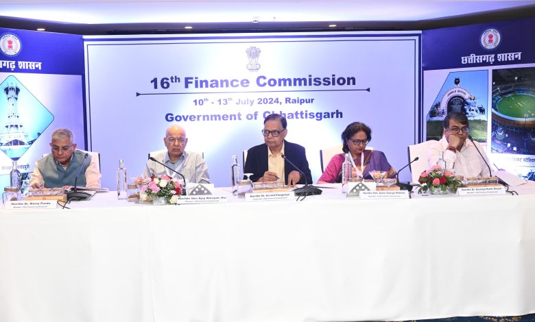 रायपुर // केन्द्रीय वित्त आयोग के अध्यक्ष डॉ अरविंद पनगढ़िया के नेतृत्व में 12 सदस्यीय दल नवा रायपुर के एक निजी होटल में आज शुक्रवार को सवेरे उद्योग और वाणिज्य संगठनों के प्रतिनिधियो के साथ चर्चा हुई। इस अवसर पर उद्योग विभाग के सचिव श्री अंकित आनंद, संचालक कोष एवं लेखा महादेव कांवरे सहित उद्योग एवं वित्त विभाग के अन्य अधिकारीगण भी मौजूद थे। छत्तीसगढ़ में बेहतर औद्योगिक वातावरण का निर्माण एवं अन्य अधोसंरचना विकास तथा आर्थिक प्रगति सहित विभिन्न मुद्दों पर विचार विमर्श किया गया। वित्त आयोग के अध्यक्ष डॉ अरविंद पनगढ़िया ने कहा कि वन एवं खनिज संसाधनों से भरपूर छत्तीसगढ़ राज्य में व्यापार एवं उद्योग की अनुकूल परिस्थितियां है। उन्होंने आयोग द्वारा अधोसंरचनाओं के निर्माण में हर संभव सहयोग का भरोसा दिलाया।
