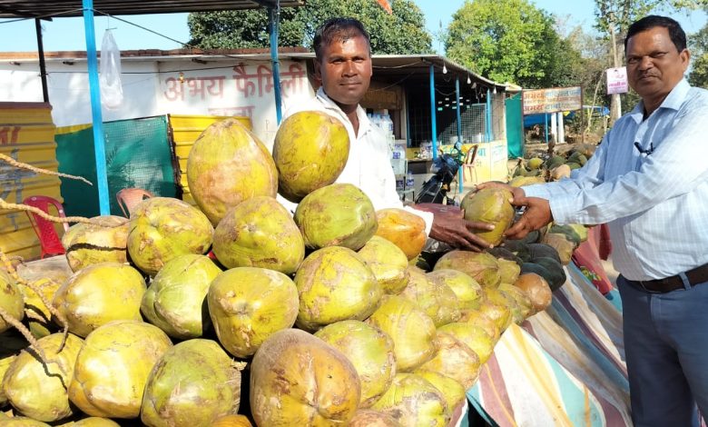गोपाल सिंह विद्रोही //प्रदेश खबर प्रमुख// छत्तीसगढ़//जानकारी के अनुसार राष्ट्रीय राजमार्ग 43 पर सड़क सड़क किनारे जगह-जगह कई नारियल पानी की दुकानें सज गई है जिसे देख कर अंदाजा लगाना आसान हो जाता है कि देशी पेय पदार्थ नारियल पानी की मांग कितनी है।
