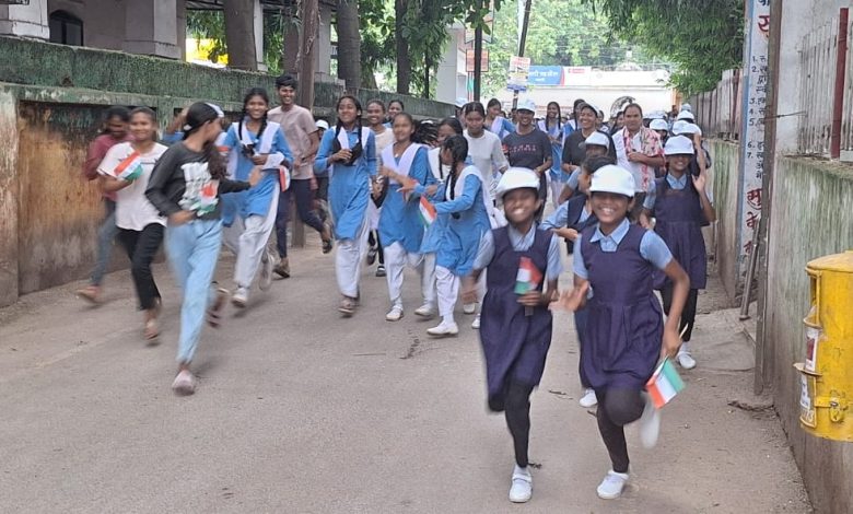 धमतरी // स्वतंत्रता दिवस के उपलक्ष्य में आज जिला प्रशासन तथा खेल एवं युवा कल्याण विभाग द्वारा स्वतंत्रता दौड़ का आयोजन किया गया। यह दौड़ सुबह 7.30 बजे से स्थानीय गांधी चौक से शुरू होकर गोलबाजार, घड़ी चौक, भगवती लॉज, देवश्री टॉकिज रोड, शिव चौक, सेंचुरी गार्डन होते हुए गांधी चौक में समाप्त हुई। महापौर श्री विजय देवांगन और पूर्व विधायक श्रीमती रंजना साहू ने इस अवसर पर रैली को हरी झण्डी दिखाकर रवाना किया। रैली में कलेक्टर सुश्री नम्रता गांधी, पुलिस अधीक्षक श्री आंजनेय वार्ष्णेय, जिले के अधिकारी-कर्मचारी, गणमान्य नागरिक, जनप्रतिनिधि और स्कूली बच्चां ने उत्साह के साथ हिस्सा लिया।