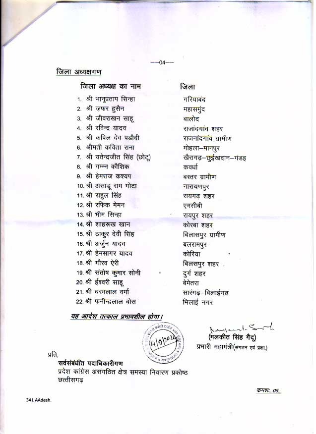 प्रदेश कांग्रेस असंगठित क्षेत्र समस्या निवारण प्रकोष्ठ के कार्यकारिणी और जिला अध्यक्षों की नियुक्ति!