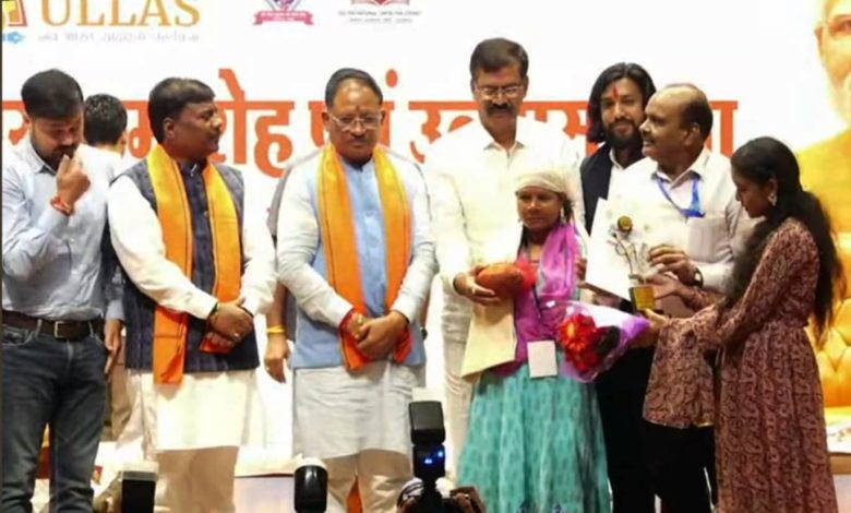 मुख्यमंत्री विष्णुदेव साय ने दिव्यांग शांति बाई ठाकुर की प्रतिभा को देखकर राज्य स्तरीय उल्लास मेला में किया सम्मानित