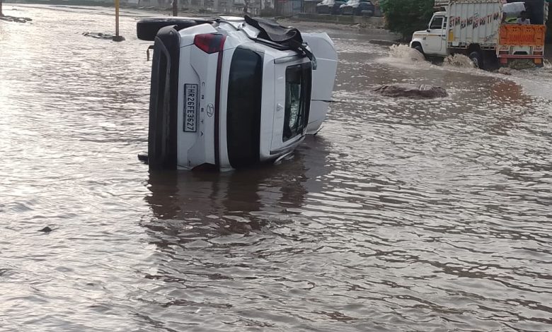 भिवाड़ी में अलवर की तरफ जा रही तेज रफ्तार कार ने उछलकर बस के ऊपर से दूसरी तरफ जाकर गिरी और आडी खड़ी हो गई, कार अलवर भिवाड़ी हाईवे पर मिट्टी के रैंप से टकराकर उछली थी। वहां लगे सीसीटीवी कैमरे में यह सारी घटना कैद होने से सच्चाई सामने आई है। यह हादसा गुरुवार रात 12:50 का है, आसपास के लोगों ने बताया कि आज सुबह उन्होंने देखा कि एक कार सड़क पर पानी के बीच में उल्टी पड़ी थी, आसपास के लोगों ने कार को सीधा किया, और पुलिस को घटना की जानकारी दी। हादसे में कोई जनहानि नहीं हुई है, पुलिस ड्राइवर की तलाश में जुट गई है।