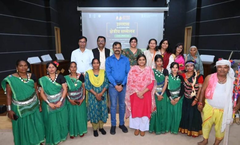 भारत सरकार शिक्षा मंत्रालय के स्कूल शिक्षा एवं साक्षरता विभाग की संयुक्त सचिव श्रीमती अर्चना शर्मा अवस्थी, एनसीईआरटी नई दिल्ली की एनसीएल प्रभारी प्रोफेसर उषा शर्मा राज्य साक्षरता मिशन प्राधिकरण व राज्य शैक्षिक अनुसंधान व प्रशिक्षण परिषद छत्तीसगढ़ के डायरेक्टर श्री राजेंद्र कुमार कटारा के कुशल नेतृत्व में दो दिवसीय उल्लास क्षेत्रीय सम्मेलन रीजनल कॉन्फ्रेंस NITTTR भोपाल में आयोजित कियागया। श्री कटारा ने छत्तीसगढ़ में उल्लास कार्यक्रम की प्रगति से संयुक्त सचिव श्रीमती अवस्थी को अवगत कराया। राज्य साक्षरता मिशन प्राधिकरण में उल्लास कार्यक्रम के राज्य नोडल अधिकारी कार्यक्रम में प्रोजेक्टर के द्वारा छत्तीसगढ़ में उल्लास में किए गए कार्यों एवं बेस्ट प्रैक्टिसेस को बताया। प्रस्तुतिकरण में साक्षरता चौक साक्षरता रथ साक्षरता ताली स्थानीय संसाधनों से पढ़ने के नए-नए तरीके के साथ यह भी बताया कि छत्तीसगढ़ राज्य में प्रथम चरण में 10 लाख असाक्षरों को साक्षर करने का लक्ष्य दिया गया है, उसमें से 75 प्रतिशत नाम उल्लास पोर्टल में दर्ज कर लिया गया है।