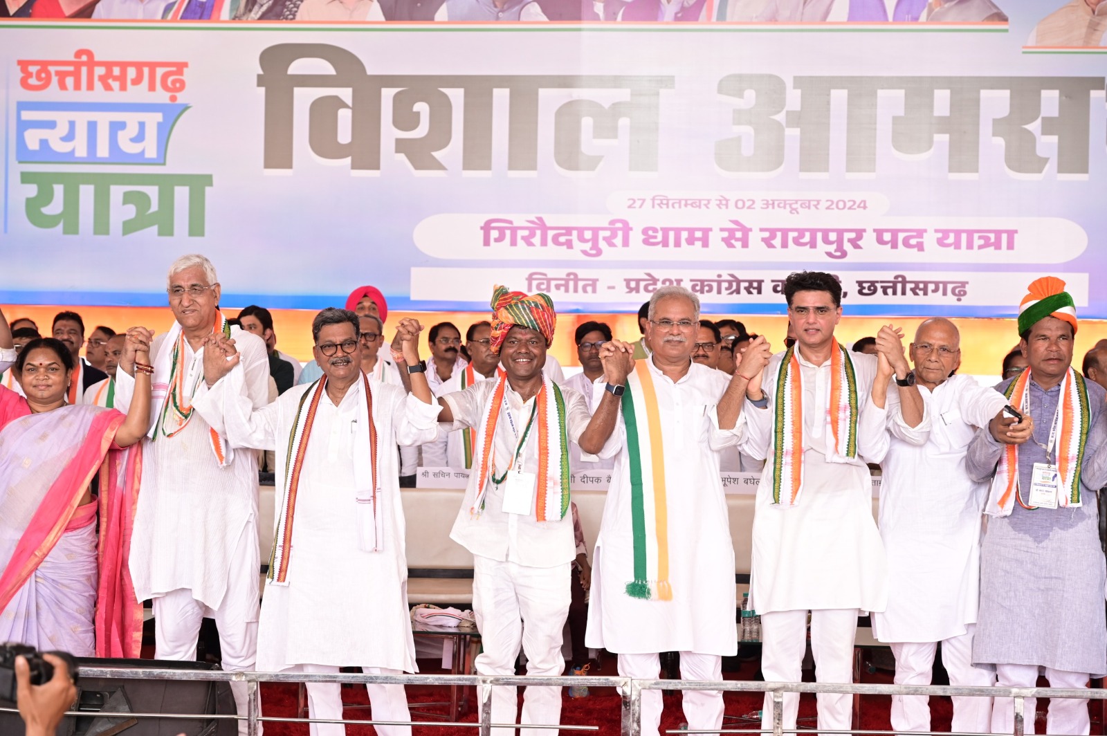 पूर्व उपमुख्यमंत्री टी.एस. सिंहदेव ने कहा कि छत्तीसगढ़ न्याय यात्रा में सबने मिलकर जनता और आप लोगों तक सच्चाई को पहुंचाया। ऐसा महसूस हो रहा है कि कल्पना भी नही की थी कि जब कवर्धा गया वहां जेल में बंद लोगो से बात किया और 5 लोगो ने बताया कि जहां कचरू की लाश पड़ी हुयी थी। कहा गया कि उसने फांसी लगा ली। 5 लोगो ने कहा हम मध्यप्रदेश में मौजूद थे और कोटवार वहां पर उपस्थित थे, पुलिस कर्मी वहां पर उपस्थित थे। मध्यप्रदेश के पुलिस वाले आये और लाश को उतारा और डॉक्टर पोस्टमार्टम के समय उपस्थित थे। रात वहीं पर हम रूके और अगले दिन आये और उन्हें वहां आगजनी के मामले में बंदी बना दिये। 5 लोगो में 3 लोगों ने बताया कि कचरू की सिर में चोट के निशान है और एक व्यक्ति ने बताया कि कमर में लाल किस्म का ब्लड जैसा दिख रहा है। जो लोग वहां उपस्थित नहीं थे उन्हें भी बंदी बनाकर जेल में डालने की घटना से हमें अवगत किया है। सारी बातों से स्पष्ट है कि यह सरकार किस तरह से असफल हो रही है, उसमें परिवर्तन छत्तीसगढ़ की हित में लाने के लिये न केवल विपक्ष, न केवल प्रदेश कांग्रेस अध्यक्ष दीपक बैज की अगुवाई और कांग्रेस के सारे वरिष्ठ नेतागण मिलकर के काम कर करके कोशिश कर सकते है। आप की सहभागिता के बिना यह संभव नहीं होगा। प्रदेश कांग्रेस अध्यक्ष दीपक बैज को बधाई देता हूं यह एक अत्यंत संवेदनशील समय में उन्होंने बहुत ही जिम्मेदारी से निर्णय लिया और पदयात्रा का आयोजन कर लोगो का ध्यान आकर्षित किया, बेहतर छत्तीसगढ़ के लिये यह पदयात्रा बेहद आवश्यक था।