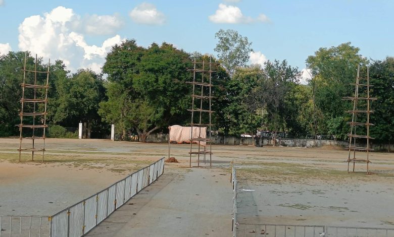 कांकेर। शहर के नरहरदेव मैदान में 12 अक्टुबर को दशहरा के दिन रावण दहन होगा। इस अवसर पर भव्य आतिशबाजी का भी आयोजन होगा। रावण दहन से पहले राम रावण युद्ध प्रसंग का मंचन भी होगा। आयोजन की तैयारियां नरहरदेव मैदान में जोर शोर से चल रही है। सुरक्षा के लिए बेरिकेटिंग आदि के प्रबंध किए जा रहे हैं।