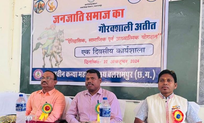 बलरामपुर// भारत सरकार द्वारा जनजाति समाज का गौरवशाली अतीत, ऐतिहासिक, समाजिक एवं आध्यात्मिक योगदान पर कार्यशाला आयोजित किया जा रहा है। इसी कड़ी में उच्च शिक्षा विभाग रायपुर के निर्देश के परिपालन में शासकीय नवीन कन्या महाविद्यालय बलरामपुर में प्राचार्य अगस्टिन कुजूर के संरक्षण में एक दिवसीय कार्यशाला का आयोजन किया गया। शासकीय महाविद्यालय बलरामपुर के प्राचार्य नन्द कुमार देवांगन की अध्यक्षता, मुख्य अतिथि जनपद सीईओ बलरामपुर रणवीर साय, वक्ता के रूप में सहायक प्राध्यापक एन.के. सिंह उपस्थिति थे। कार्यक्रम का शुभारंभ मां सरस्वती, छत्तीसगढ़ महतारी एवं जनजाति समाज के गौरव भगवान बिरसा मुंडा के छायाचित्र पर दीप प्रज्वलित कर किया गया।