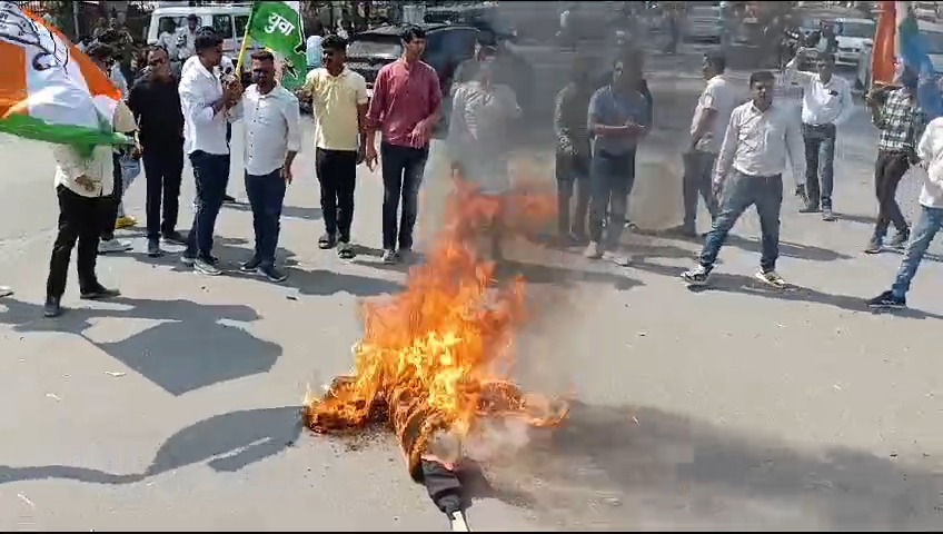 ईडी की कार्रवाई के खिलाफ कांग्रेस का हल्ला बोल, सरगुजा में पुतला दहन