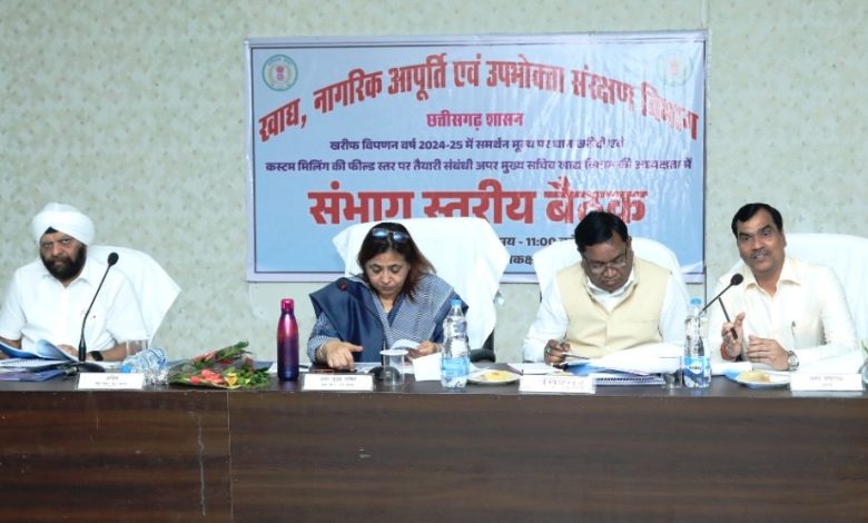 जिला पंचायत के सभाकक्ष में आज सुबह 11 बजे से आयोजित बैठक में अपर मुख्य सचिव ने खरीफ विपणन वर्ष 2024-25 में समर्थन मूल्य पर धान खरीदी एवं कस्टम मिलिंग की मैदानी स्तर पर तैयारियों की समीक्षा एजेण्डावार नये तथा पुराने बारदाना व्यवस्था, किसानों का भुगतान, किसान पंजीयन की स्थिति, धान खरीदी का आंकलन, धान, चांवल रिसाइकलिंग रोकने हेतु प्रयास तथा संवेदनशील खरीदी केन्द्रों की पहचान, विशेष जांच दल का गठन, चेक पोस्ट, त्रुटिपूर्ण रकबा एन्ट्री सहित ट्रायल रन, मिल पंजीयन, मिलिंग प्लान, गोदामों की उपलब्धता, रैकमूव्हमेंट, संग्रहण केन्द्रों की व्यवस्था और खरीफ विपणन वर्ष 2023-24 में चावल उपार्जन की स्थिति, समिति मिलान की स्थिति पर विस्तृत चर्चा कर जरूरी निर्देश दिए।