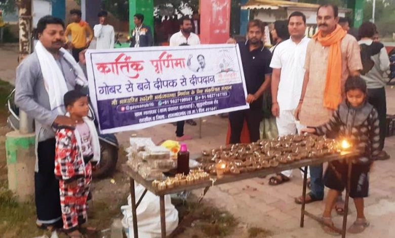 कार्तिक पूर्णिमा पर गोवर से बने दीपक से हुआ दीपदान