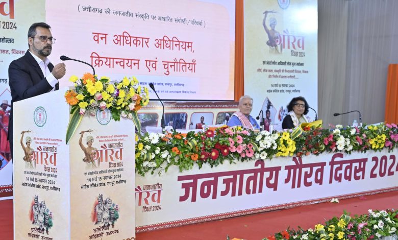 रायपुर, 15 नवंबर 2024/ छत्तीसगढ़ की जनजातीय संस्कृति पर आधारित संगोष्ठी के दूसरे दिन जनजातीय समुदाय पर्यावरण संरक्षण वैश्विक परिप्रेक्ष्य में तथा वन अधिकार अधिनियम क्रियान्वयन एवं चुनौतियों विषय पर परिचर्चा का आयोजन किया गया।