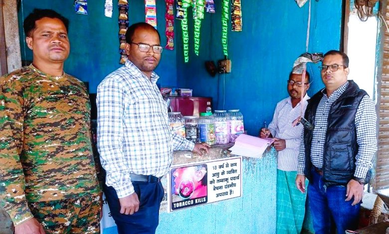 महासमुंद और सरायपाली में राष्ट्रीय तंबाकू नियंत्रण कार्यक्रम के तहत, संयुक्त प्रवर्तन दल द्वारा चालानी कार्रवाई