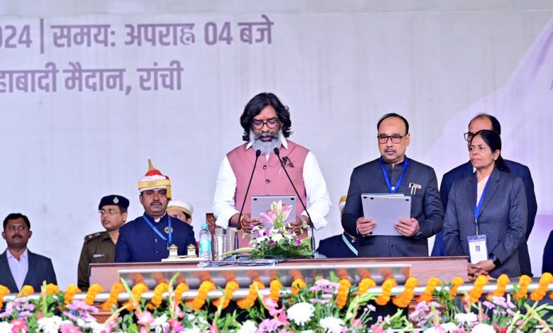 नई दिल्ली: हेमंत सोरेन ने गुरुवार को रांची में एक समारोह में झारखंड के 14वें मुख्यमंत्री के रूप में शपथ ली। झारखंड मुक्ति मोर्चा (JMM) के 49 वर्षीय नेता के लिए यह मुख्यमंत्री के रूप में चौथा कार्यकाल होगा।