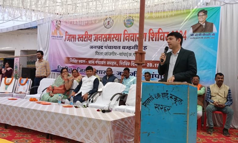 जन समस्या निवारण शिविर को संबोधित करते हुए कलेक्टर आकाश छिकारा ने कहा कि शासन की योजनाएं आम नागरिक तक पहुंचे और उनका क्रियान्वयन शत प्रतिशत हो इसको लेकर जिले में जन समस्या निवारण शिविर का आयोजन किया जा रहा है। उन्होंने शासन द्वारा चलाये जा रहे जनकल्याणकारी योजनाओं व जिला प्रशासन द्वारा किये जा रहे नवाचार कार्यक्रमों की जानकारी दी। इसी प्रकार आयुष्मान, पीएम सम्मान निधि, विश्वकर्मा योजना सहित शासन द्वारा चलाई जा रही विभिन्न योजनाओं का अधिक से अधिक लाभ लें। इस दौरान पूर्व विधायक डॉ खिलावन ने कहा कि शासन की योजनाओं का लाभ उठाने के लिए जन समस्या निवारण शिविर का आयोजन किया जा रहा है, इसका सभी अधिक से अधिक लाभ उठाएं।