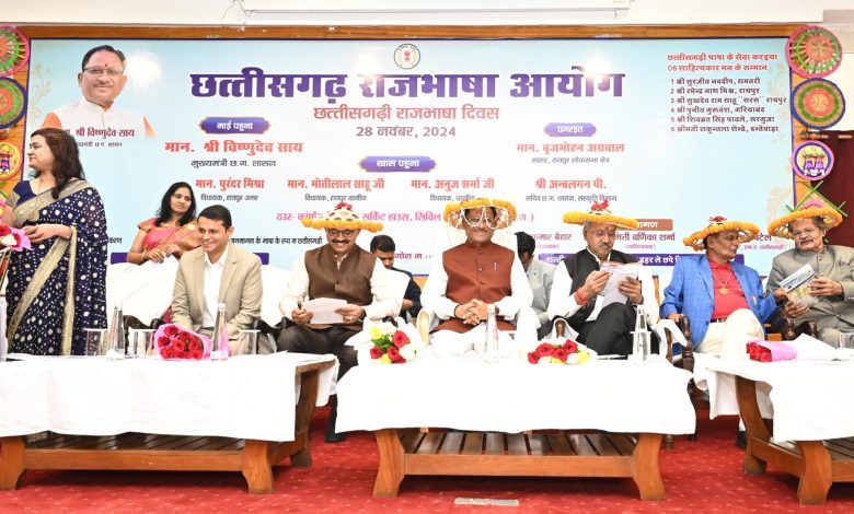 रायपुर /छत्तीसगढ़ी राजभाषा दिवस के अवसर पर एक कार्यक्रम में, मुख्यमंत्री विष्णु देव साय ने छत्तीसगढ़ी भाषा को सुधारने वाले छह साहित्यकारों को शॉल-श्रीफल और स्मृति चिन्ह देकर सम्मानित किया। उनके अलावा, छत्तीसगढ़ राजभाषा आयोग द्वारा छत्तीसगढ़ी में लिखित बारह पुस्तकों का विमोचन हुआ। सांसद बृजमोहन अग्रवाल ने कार्यक्रम की अध्यक्षता की। कार्यक्रम में विशेष अतिथि के रूप में डॉ. सुरेन्द्र दुबे और डॉ. रमेन्द्रनाथ मिश्र उपस्थित थे।