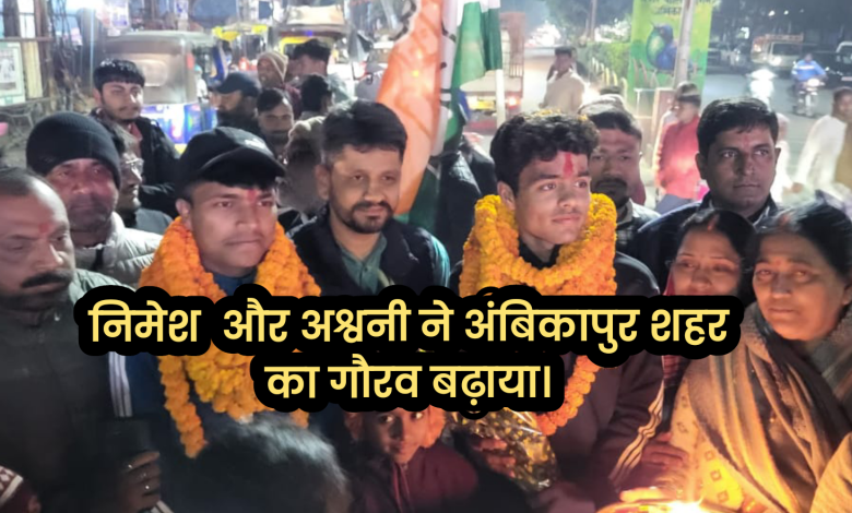 निमेश ने स्वर्ण पदक और अश्वनी ने कांस्य पदक जीतकर अंबिकापुर शहर का गौरव बढ़ाया।