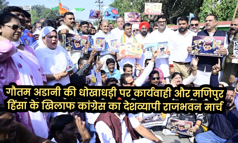 गौतम अडानी की धोखाधड़ी पर कार्यवाही और मणिपुर हिंसा के खिलाफ कांग्रेस का देशव्यापी राजभवन पैदल मार्च