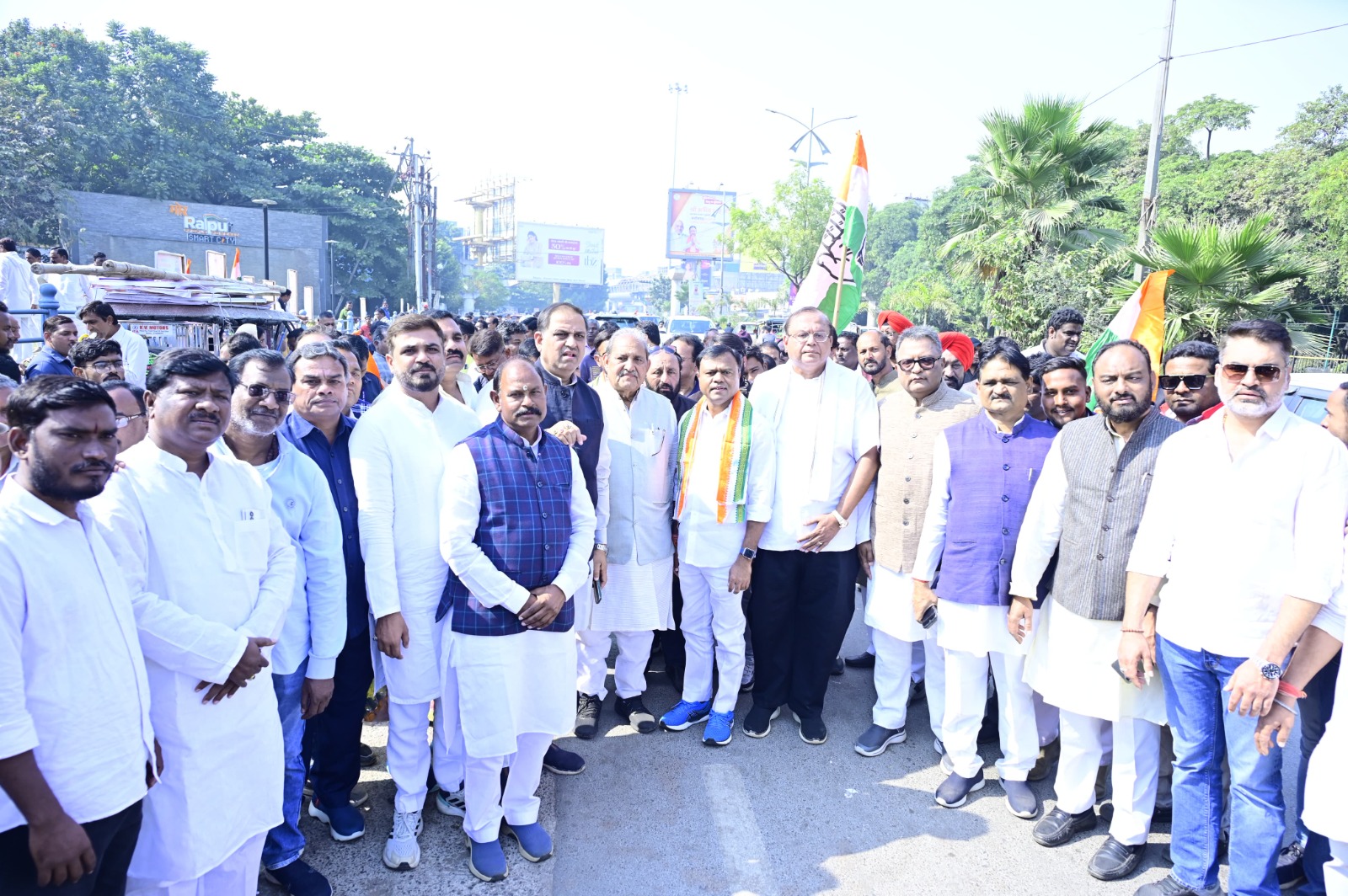 रायपुर/ अखिल भारतीय कांग्रेस कमेटी के निर्देश पर प्रदेश कांग्रेस अध्यक्ष दीपक बैज के नेतृत्व में प्रदेश कांग्रेस ने बाबा अंबेडकर मूर्ति से राजभवन तक पैदल मार्च निकाला।