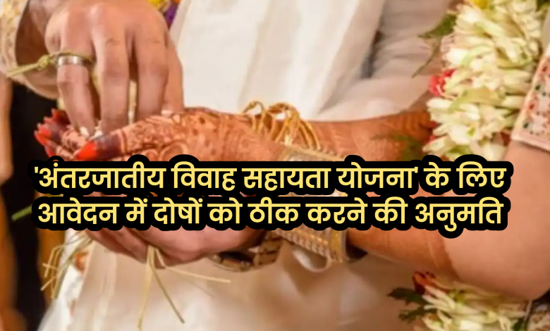 ‘अंतरजातीय विवाह सहायता योजना’ के लिए आवेदन में दोषों को ठीक करने की अनुमति।