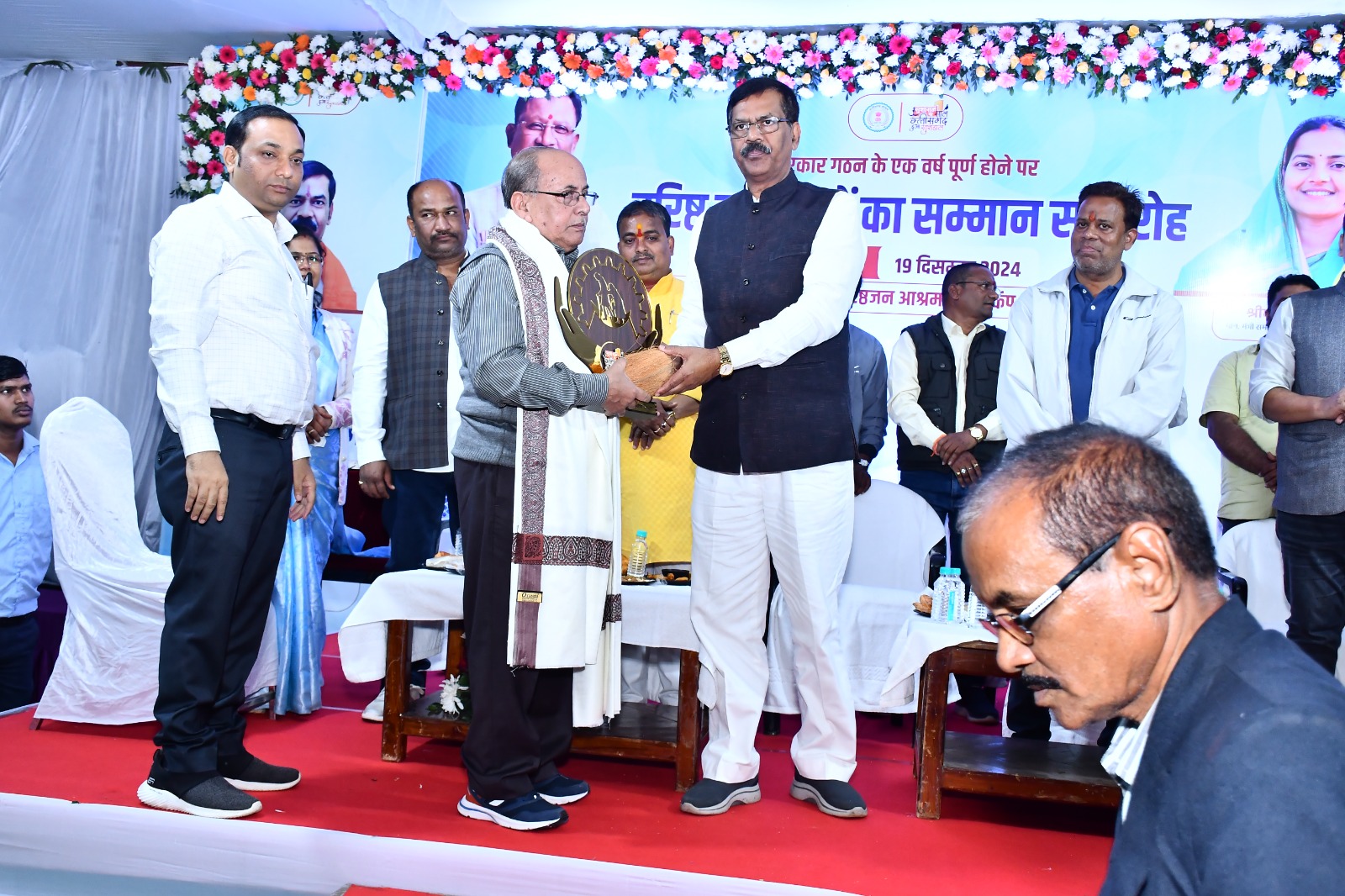 रायपुर// सरकार गठन के एक वर्ष पूर्ण होने पर राजधानी स्थित शासकीय वृद्धाश्रम माना कैम्प में शासकीय नवीन वरिष्ठजन आश्रम एवं पी एल होम के वरिष्ठ नागरिकों का शाल, श्रीफल से सम्मानित किया गया। वहीं सीनियर सिटीजन फोरम के सदस्यों को वरिष्ठ नागिरकों के हितों में काम करने के लिए मोमेंटो, शाल, श्रीफल से विधायक मोतीलाल साहू द्वारा सम्मानित किया गया। इस दौरान समाज कल्याण विभाग के अधिकारी कर्मचारी उपस्थित रहे।