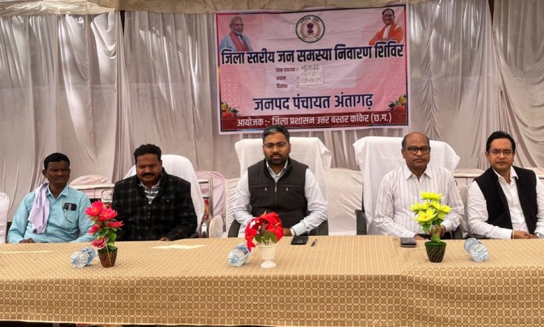 उत्तर बस्तर कांकेर/ कलेक्टर निलेश कुमार महादेव क्षीरसागर के निर्देशानुसार जिला स्तरीय जनसमस्या निवारण शिविर का आयोजन आज अंतागढ़ विकासखण्ड की ग्राम पंचायत बुलावण्ड में किया गया, जहां ग्रामीणों ने अपनी विभिन्न मांगों एवं समस्याओं को लेकर कुल 21 आवेदन प्रस्तुत किए। इनमें 03 आवेदनों का शिविर स्थल पर ही निराकरण किया गया। कलेक्टर ने संबंधित विभाग के अधिकारियों को मौके पर मिले शेष आवेदनों को निराकृत कर आवेदनकर्ता को सूचित करने के लिए निर्देशित किया। इस अवसर पर शिविर में जिला स्तरीय अधिकारियों ने स्टॉल लगाकर विभागीय योजनाओं की जानकारी ग्रामीणों को दी।