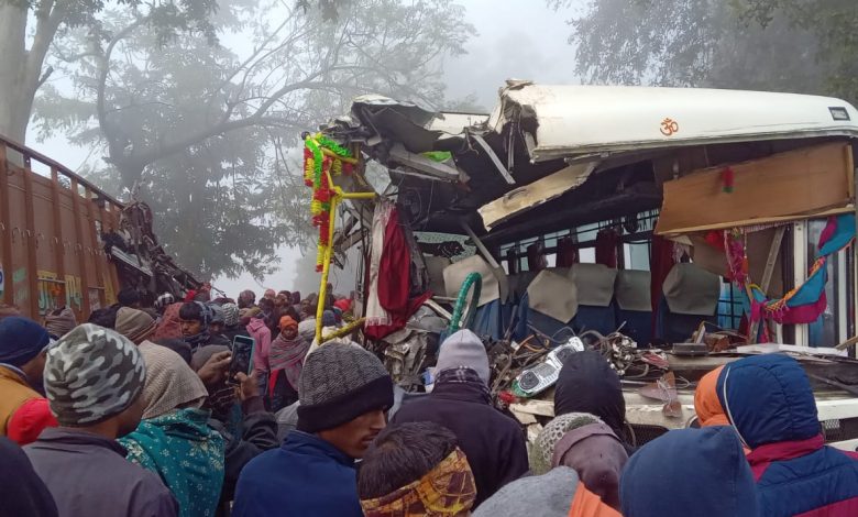 कुहासे ( धुंध) का असर बस और ट्रक के बीच भीषण टक्कर ।