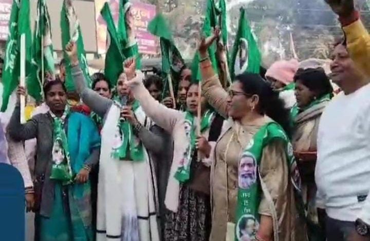 पलामू – मेदिनीनगर शहर में JMM जिला अध्यक्ष राजेन्द्र सिन्हा के नेतृत्व में महिला मोर्चा की अध्यक्षा सुशिला मिश्रा ने अपनी महिला मोर्चा की टीम के साथ मईया सम्मान योजना की राशि 2500 सभी महिलाओ के खाते में जाने की खुशी में JMM कार्यालय से छह मुहाँन तक जुलूस निकाल खुशी जाहिर की वही पटाखे भी छोड़े । मौके पर जिला सचिव शन्नू सिद्दकी , राकेश सिन्हा , दीपू चौरसिया समेत महिला मोर्चा की कई महिलाएं शामिल रही । आपको बता दे कि राँची में हेमन्त सोरेन के द्वारा मईया सम्मान समारोह का आयोजन किया जा रहा है जिसके तहत आज सभी मईया के खाते में 2500 रुपये भेजी जाएगी।