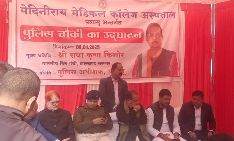 पलामू /सतीश कुमार मेहता / मेदिनीगर- झारखंड सरकार के वित्त मंत्री राधा किशोर ने मेदिनी राय मेडिकल कॉलेज अस्पताल में पुलिस चौकी का किया उद्घाटन, मौके पर एसपी रीष्मा रमेशन, डीडीसी सब्बीर अहमद, कांग्रेस जिला अध्यक्ष जैश रंजन पाठक, प्रिंसिपल डॉ. पी एन महतो, मेडिकल सुपरिटेंडेंट डॉ. धर्मेंद्र कुमार, सिविल सर्जन डॉ. अनिल सिंह समेत स्वास्थ्य विभाग के अधिकारी रहे मौजूद ।