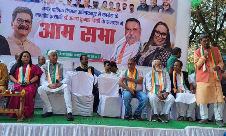 नगर निगम अम्बिकापुर चुनाव के प्रचार-प्रसार के लिये नेता प्रतिपक्ष डॉ चरण दास महंत सभा को संबोधित किया