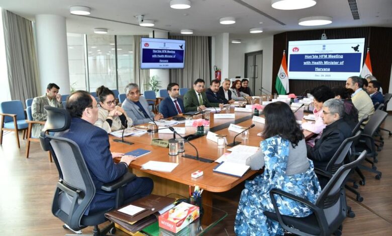 जेपी नड्डा ने हरियाणा के स्वास्थ्य अधिकारियों के साथ बैठक कर टीबी उन्मूलन, टेक्नोलॉजी आधारित स्वास्थ्य सेवाओं और अमृत फार्मेसी पर जोर दिया।