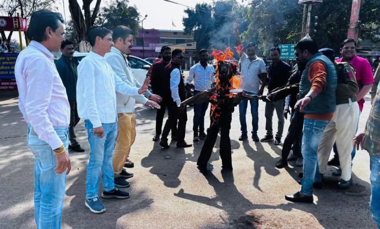 कांग्रेस ने अमेरिकी राष्ट्रपति ट्रंप एवं प्रधानमंत्री नरेंद्र मोदी का पुतला जलाया गया