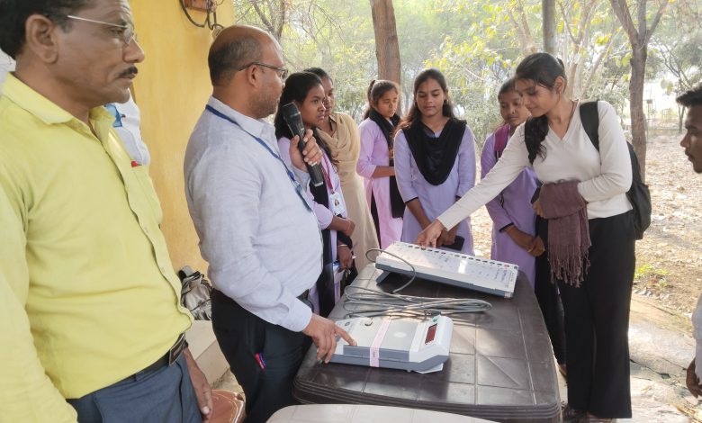 महासमुंद/ आगामी 11 फरवरी को होने वाले नगरीय निकाय चुनाव को लेकर सरायपाली में मतदाताओं को जागरूक करने के उद्देश्य से लगातार जन-जागरूकता अभियान चलाया जा रहा है। इस अभियान के तहत नगर के विभिन्न वार्डों सहित स्व. राजा वीरेंद्र बहादुर शासकीय महाविद्यालय, सरायपाली में इलेक्ट्रॉनिक वोटिंग मशीन (ईव्हीएम) मशीन के माध्यम से मतदान प्रक्रिया की जानकारी दी जा रही है।