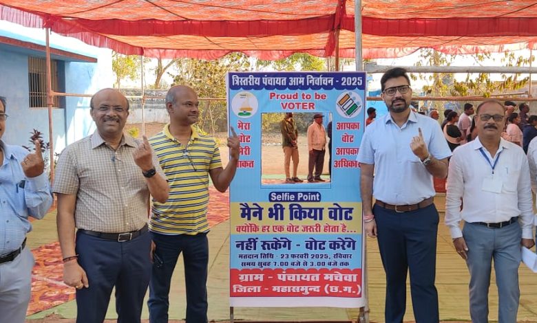 महासमुंद/ कलेक्टर एवं जिला निर्वाचन अधिकारी विनय कुमार लंगेह एवं सीईओ जिला पंचायत एस आलोक,अपर कलेक्टर रवि कुमार साहू, एसडीएम हरिशंकर पैकरा ने आज तीसरे चरण के मतदान के अंतर्गत सुबह 7 बजे महासमुंद विकासखण्ड के मचेवा स्थित प्राथमिक शाला मचेवा मतदान केन्द्र पहुँचकर और लाइन में लगकर अपनी बारी का इंतजार करते हुए मतदान किया। इस दौरान उन्होंने मतदाताओं के साथ सेल्फी भी ली । यहां बने सेल्फी जोन में सभी अधिकारियों ने सेल्फी ली। कई मतदाओं ने कलेक्टर के साथ सेल्फी भी ली।