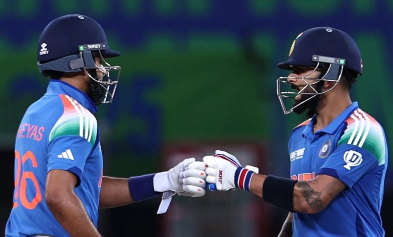 श्रेयस अय्यर (56 रन) ने महत्वपूर्ण साझेदारी निभाई।