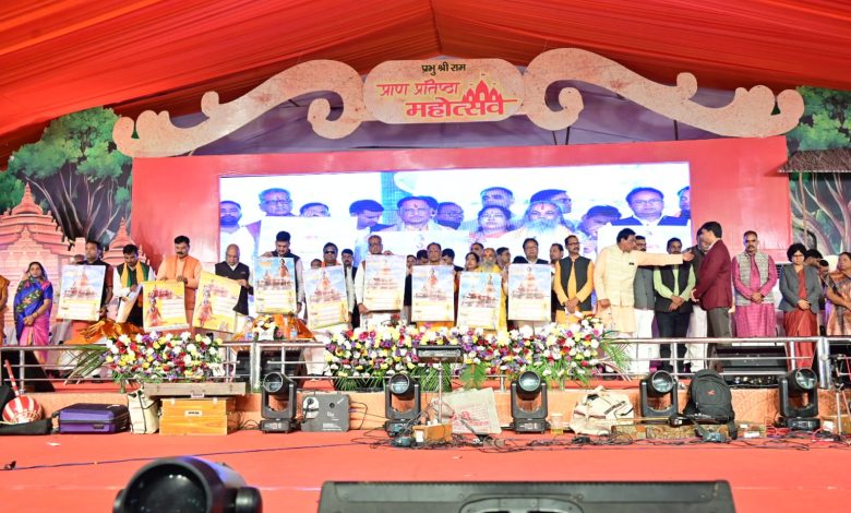 रायपुर/ अयोध्या धाम के श्रीराम जन्मभूमि में निर्मित भव्य मंदिर में आज श्री रामलला के नूतन विग्रह की प्राण-प्रतिष्ठा के पावन अवसर पर छत्तीसगढ़ शासन के जनसंपर्क विभाग की ओर से श्री राम के अयोध्या धाम और वनवास काल में छत्तीसगढ़ यात्रा से जुड़ी स्मृतियों पर आधारित कॉफ़ी टेबल बुक “हम सबके राम” व विशेष कैलेंडर “रामो विग्रहवान धर्मः” का विमोचन मुख्यमंत्री विष्णु देव साय के कर कमलों से माता शबरी की भूमि शिवरीनारायण में किया गया।