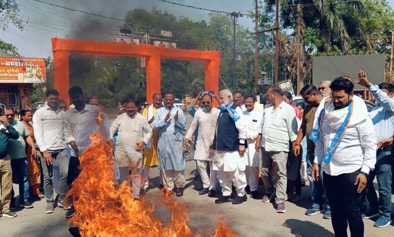 प्रदेश कांग्रेस कमेटी के आवाहन पर आज जिला कांग्रेस कमेटी ने अध्यक्ष बालकृष्ण पाठक के नेतृत्व में घडी चौक पर केन्द्र और राज्य सरकार के साथ ही सीबीआई का पुतला दहन किया। प्रदेश के पूर्व मुख्यमंत्री एवं कांग्रेस के राष्ट्रीय महासचिव भूपेश बघेल, भिलाई विधायक देवेन्द्र यादव के निवास पर हुए सीबीआई रेड के विरोध में आज प्रदेशव्यापी पुतला दहन कार्यक्रम किया गया। कुछ दिनो पूर्व भी ईडी ने पूर्व मुख्यमंत्री के आवास पर रेड की थी, लेकिन उसके हाथ कुछ नहीं लगा था। प्रदेश कांग्रेस कमेटी ने केन्द्र की मोदी सरकार पर आरोप लगाया है कि वो वैमनस्य की भावना से लगातार सीबीआई और ईडी की रेड भूपेश बघेल एवं कांग्रेस नेताओं पर करवा रही है। प्रदेश कांग्रेस कमेटी के आवाहन पर आज बडी संख्या में कांग्रेस के पदाधिकारी एवं कार्यकर्ता राजीव भवन में एकजुट हुए एवं वहां से कांग्रेस जिलाध्यक्ष के नेतृत्व में रैली निकाल कर घडी चौक पर पहॅुंचे और वहां पर पुतला दहन किया। कांग्रेस कार्यकर्ताओं ने दहन के लिये 2 पुतले बनाये थे। सफेद रंग का एक पुतला सीबीआई का था और काले रंग का दूसरा पुतला केन्द्र सरकार का प्रतीक था। पुतलों को जलाने के दौरान पुलिस से झूमा-झटकी भी हुई। पुलिस कर्मियों ने पुतलों में लगी आग को पानी से बुझाने का प्रयास किया, किंतु कांग्रेस कार्यकर्ताओं ने उनके प्रयास को सफल नहीं होने दिया। पुतला दहन के बाद जिला कांग्रेस जिलाअध्यक्ष श्री बालकृष्ण पाठक ने कहा कि केन्द्र की सरकार, नरेन्द्र मोदी की सरकार, अमित शाह की सरकार पूरे देश में उनके खिलाफ जो सैद्धान्तिक रुप से राजनीतिक गतिविधी द्वारा उनके गलत कामो का विरोध कर रहे हैं,उनके खिलाफ कारवाई हो रही है। जो इस कारवाई पर सरेंडर हो जा रहा है वो कमल छाप वाशिग मशीन में साफ होकर भाजपा में शामिल हो जा रहा है। ये सरकार ब्लैकमेलर है। वो ईडी-सीबीआई का उपयोग ब्लैकमेल के लिये कर रही है। इसी सोच के साथ पूर्व मुख्यमंत्री श्री भूपेश बघेल के खिलाफ कारवाई हो रही है। लेकिन मोदी सरकार कितना भी जोर लगा ले भूपेश बघेल न तो टूटेंगे न ही झुकेंगे। पुतला दहन के इस कार्यक्रम के दौरान 20